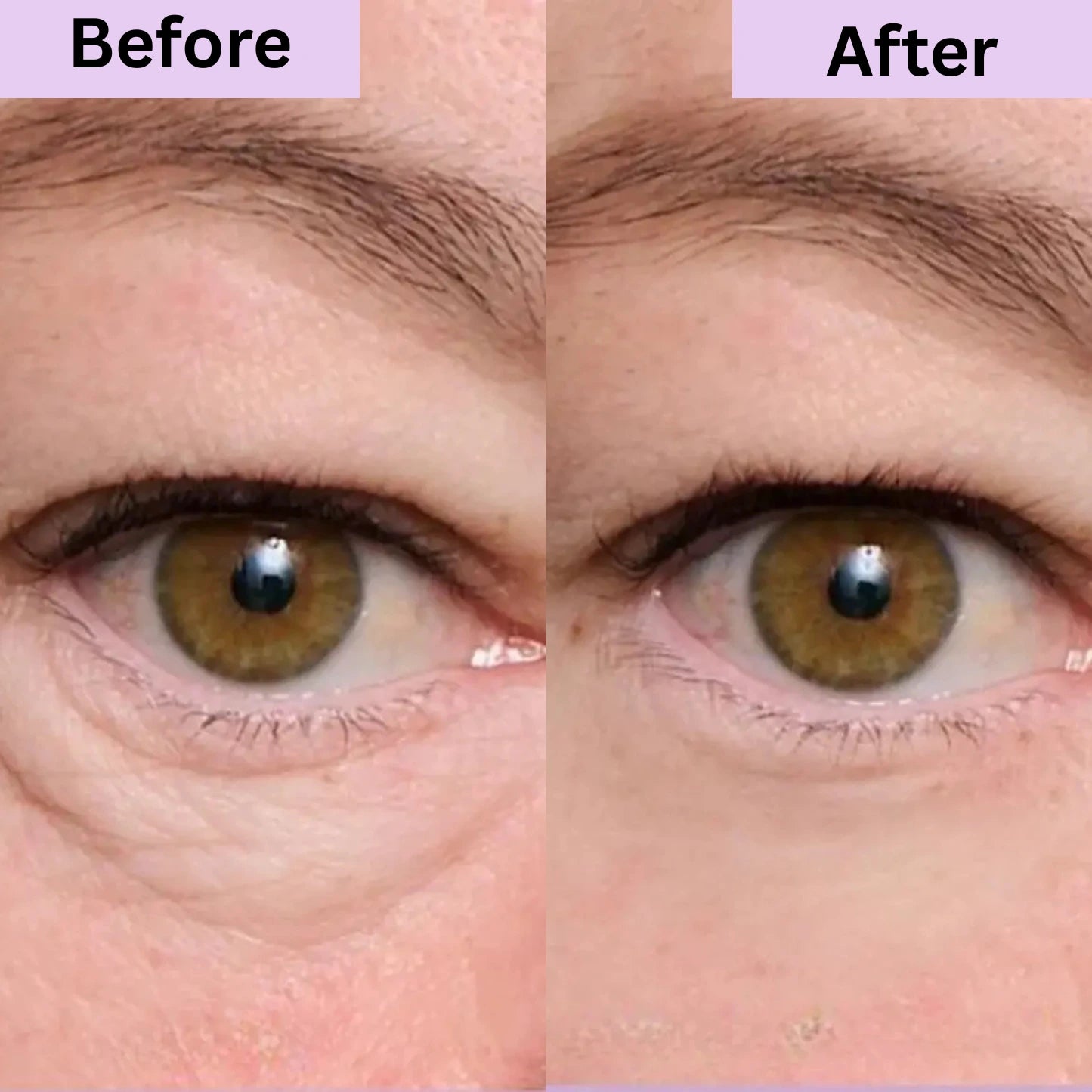 After: Skin looks noticeably smoother and more lifted, with reduced puffiness and a refreshed, well-rested glow that brightens your entire look.