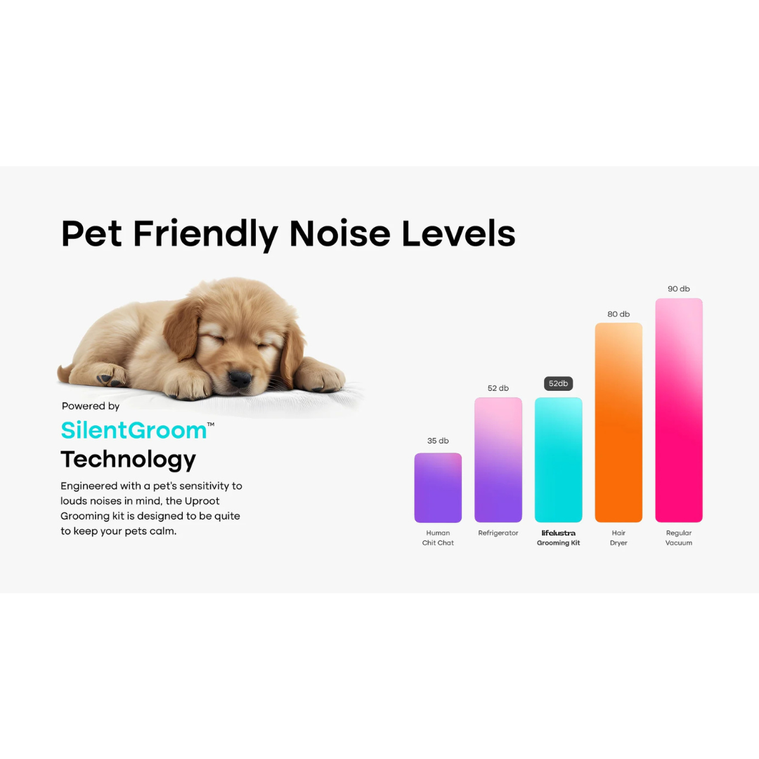 The Life Lustra Pet Grooming Kit is designed with noise-sensitive pets in mind. It features a low-noise motor with multiple adjustable levels, allowing you to groom your pet at a sound level close to normal room noise on the lowest setting.