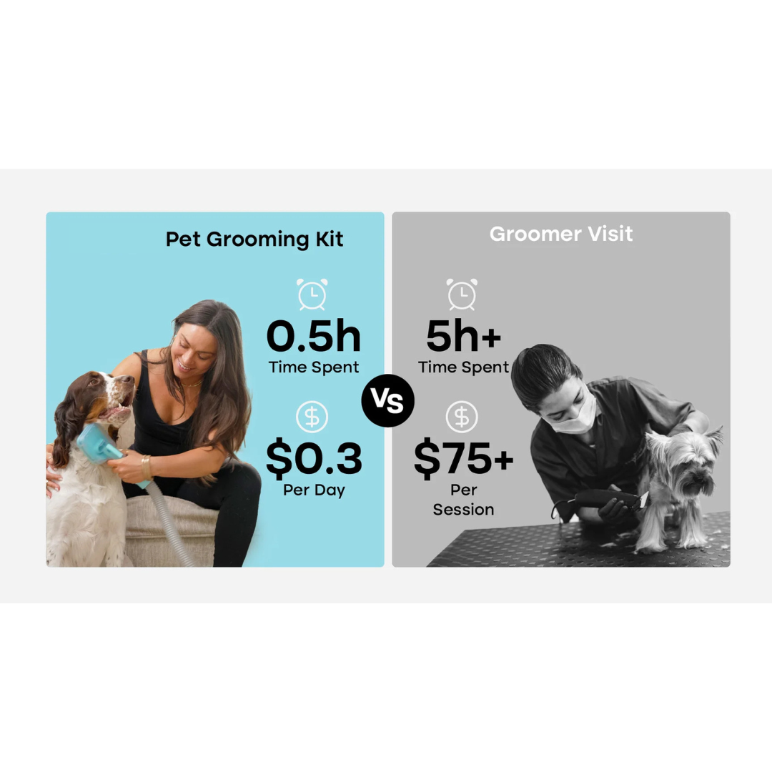 “We have two dogs and two cats and this kit is a lifesaver. I can groom everyone and clean the furniture in one go. House is finally not covered in hair.”